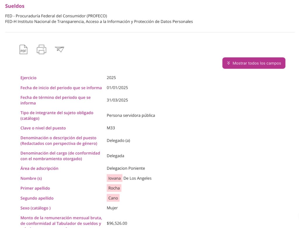 Su paso por la PROFECO como Directora de Área (ODECO Poniente) no fue precisamente un ejercicio de transparencia.