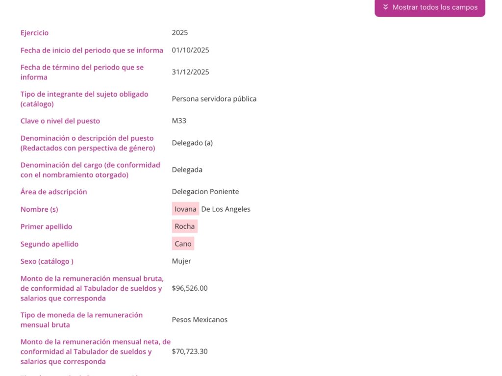 Con un contrato de “Enlace de Procesos Legislativos”, Iovana percibe un salario neto mensual de $50,020.82 MXN. La pregunta es obligada: ¿qué enlace legislativo realiza una figura que hoy carece de puentes reales con el Congreso local?