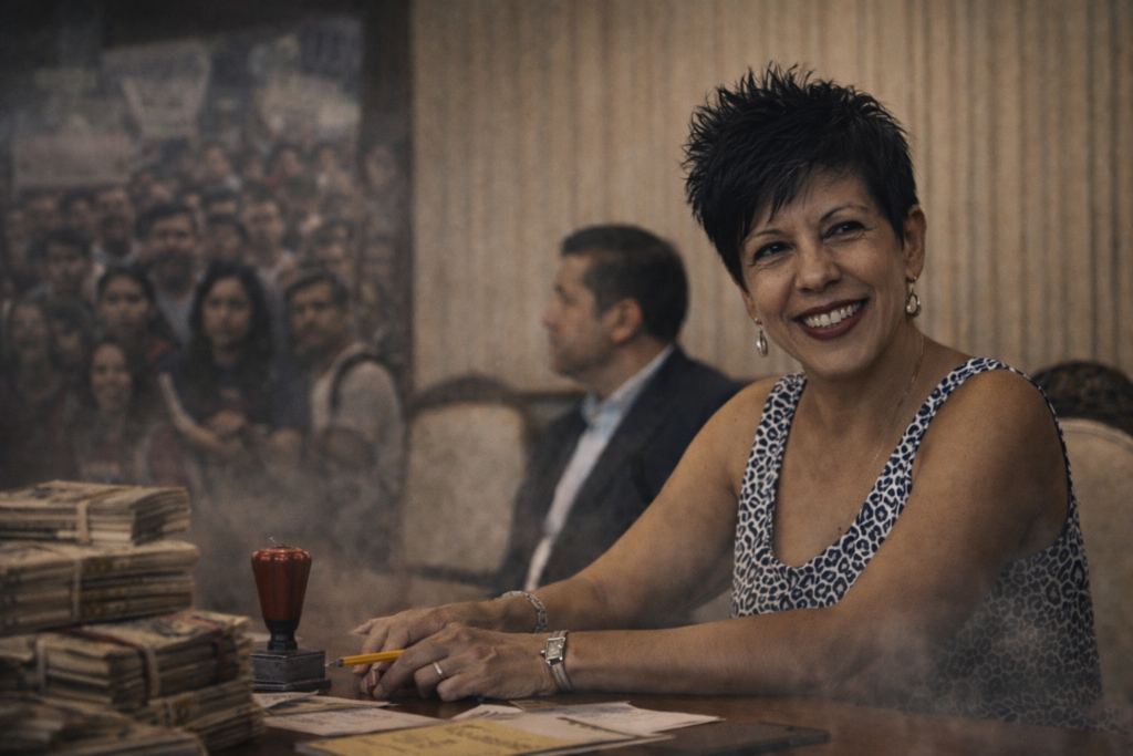 Es la burócrata del oportunismo, capaz de mutar de color —del rojo al guinda y de ahí al verde—, siempre y cuando el presupuesto sea alto y la protección de la “mafia shifiliana” se mantenga intacta.