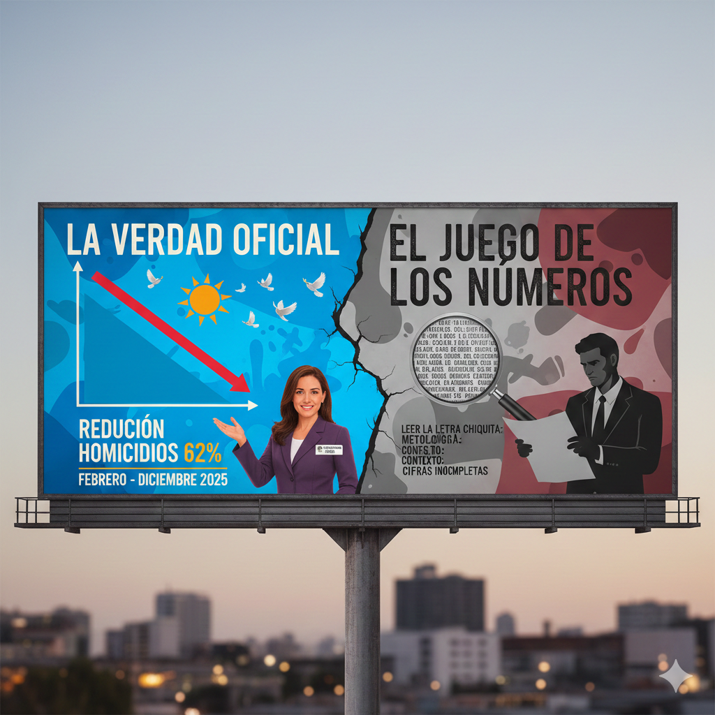 Sin embargo, aquí hay un juego estadístico: están comparando el punto más alto del año (12.7 víctimas diarias en febrero) contra el más bajo (4.8 en diciembre). Si nos vamos a la comparativa real y anual de 2024 contra 2025, la reducción es apenas del 19.2%. Una cifra mucho más modesta que el discurso oficial intenta inflar.”