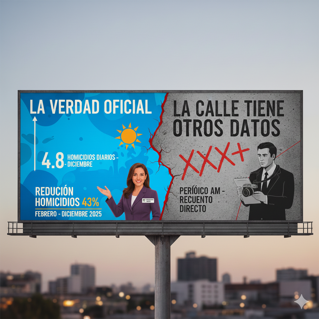“Pero hay otra realidad que se mide en las calles. Mientras el Gobierno dice que en diciembre hubo 4.8 homicidios diarios, el recuento del periódico AM, cuyos reporteros llevan un registro diario y directo, tiene ‘otros datos’.
