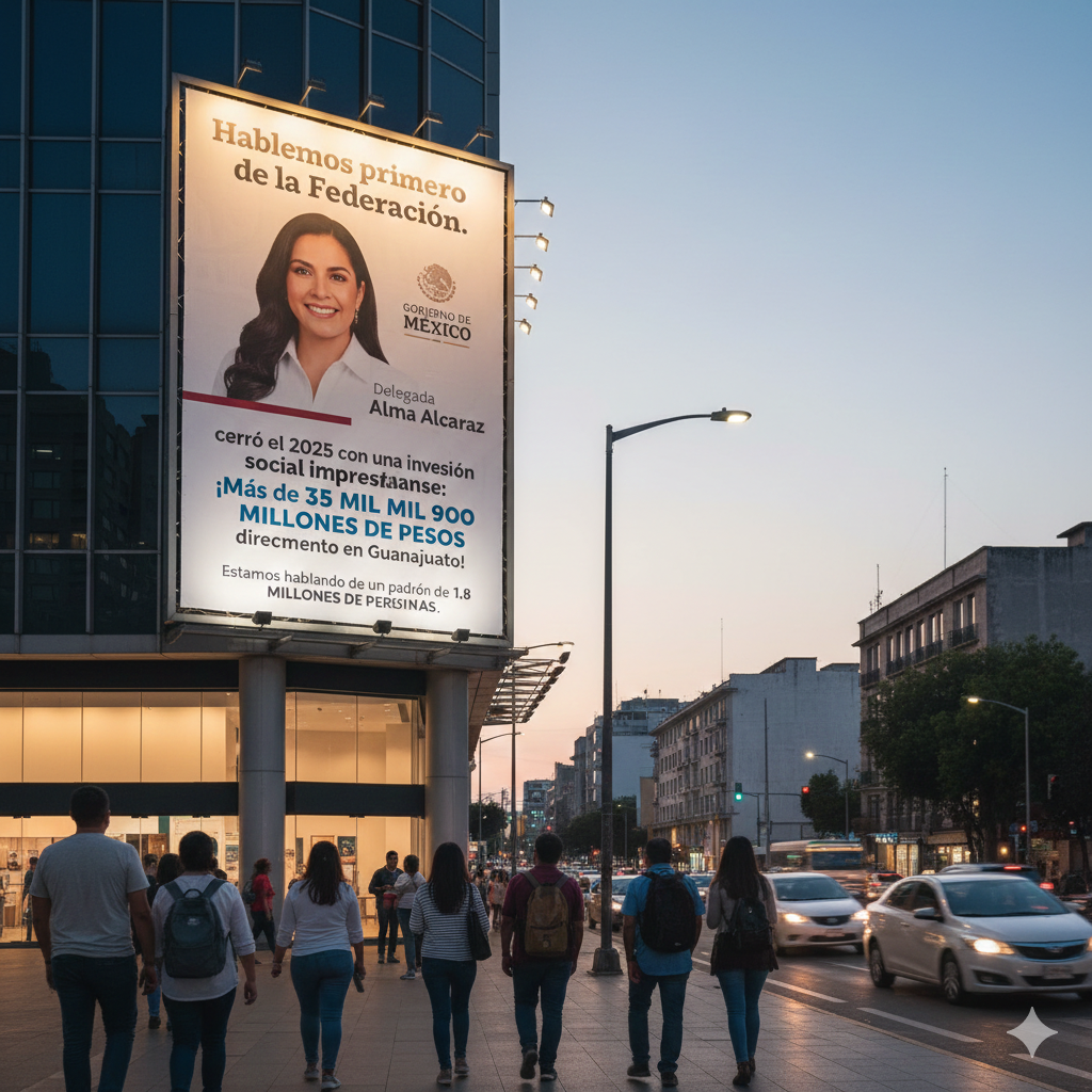 Hablemos primero de la Federación. El Gobierno de México, representado en nuestro estado por la delegada Alma Alcaraz, cerró el 2025 con una inversión social impresionante: más de 35 mil 900 millones de pesos inyectados directamente en Guanajuato. Estamos hablando de un padrón de 1.8 millones de personas.