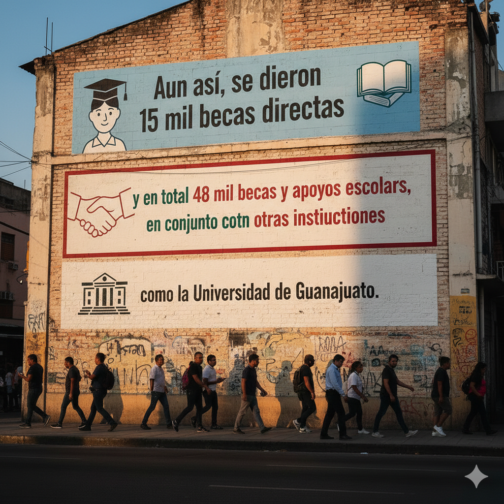 Aun así, se dieron 15 mil becas directas y en total 48 mil becas y apoyos escolares, en conjunto con otras instituciones como la Universidad de Guanajuato.