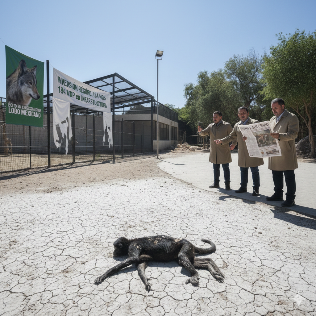 Ahora sale un vídeo del cadáver de un mono araña en el salitre de la presa Echeveste que comparte vecindad con el zoológico de León. Y ya también es culpa del pobre de Rigo. Y…también de Ale.